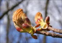 В канделябрах причудливых почки каштана.