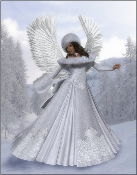 В кружевном белом платье,с венчиком из лебяжьего пуха на голове, а за спиной у нее были крылья белоснежного лебедя. Вадик узнал